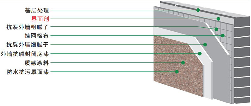 建议配套产品:界面剂一遍,抗碱底漆一遍,面漆两遍(建议涂装道数),专用罩光面漆一遍。