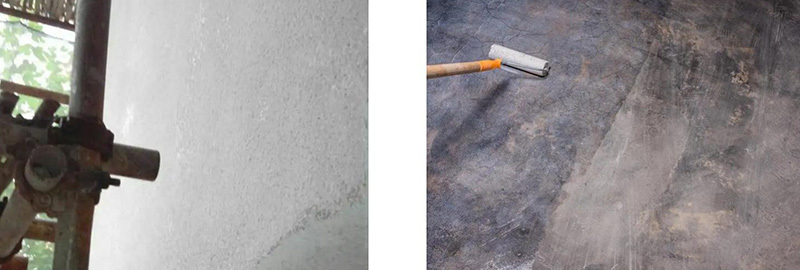 施工前先将基层上的污物,灰尘等附着物清除,基面要充分干燥后进行施工,基面含水率<10%;PH<10。
