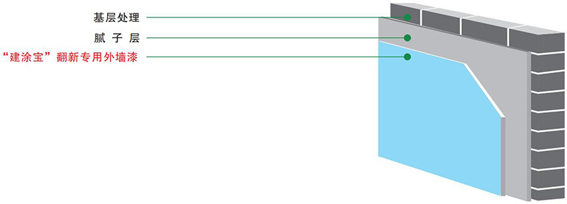 建涂宝翻新专用外墙漆主要由高耐碱改性丙烯酸乳液与多种优质填料精制而成。有遮盖力强、底面合一、耐候耐久、耐水耐碱等特点,专为旧墙翻新和新墙装饰设计的一款底面合一外墙涂料。